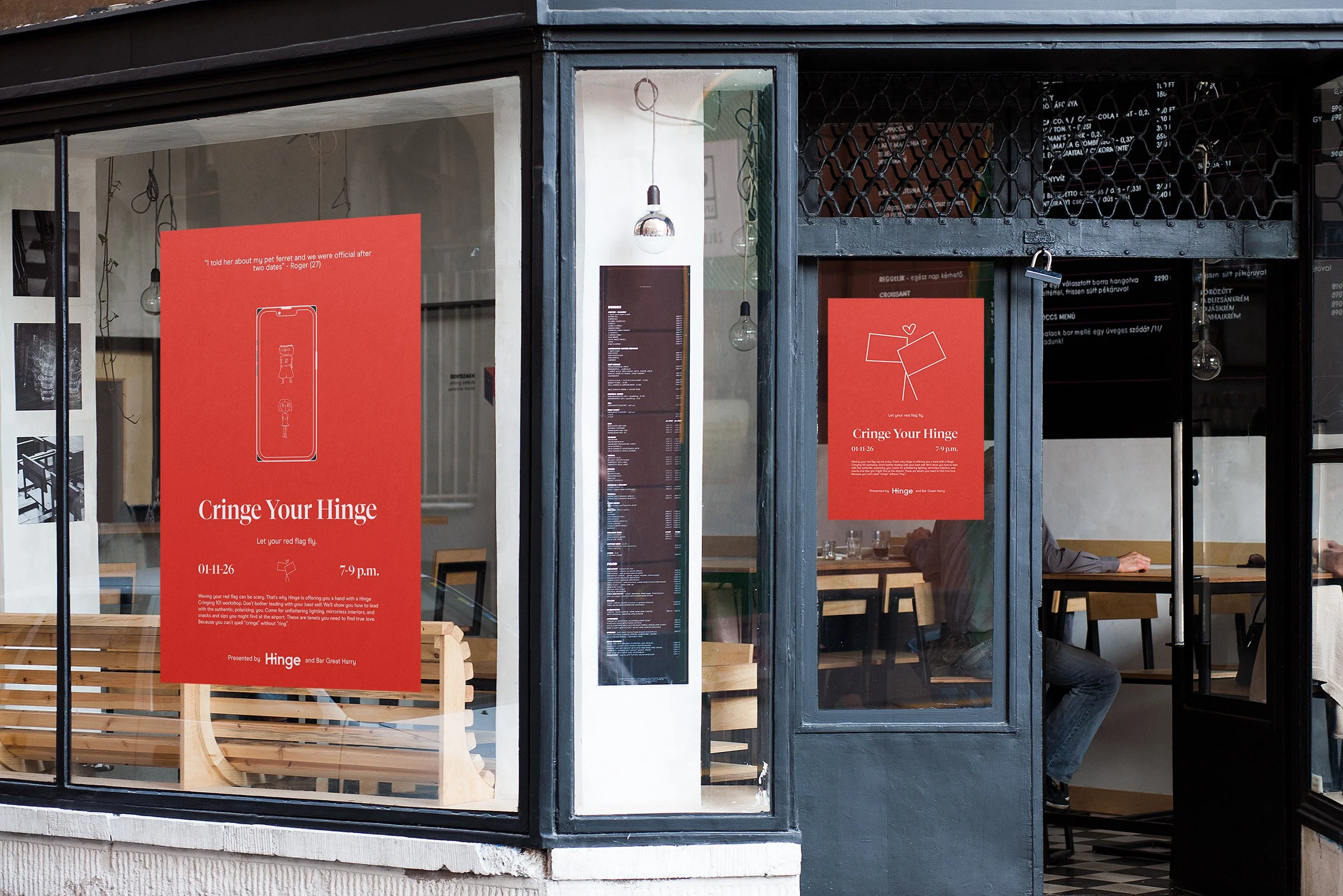 We’ll offer users a space to get weird together with Hinge Cringing 101 meetups at bars across the country. Don’t bother leading with your best self. We want the real you. Each space will feature unflattering lighting, mirrorless interiors, and snacks and sips you might find at the airport. These are the authentic tenets you need to find true love. Because you can’t spell “cringe” without “ring”.