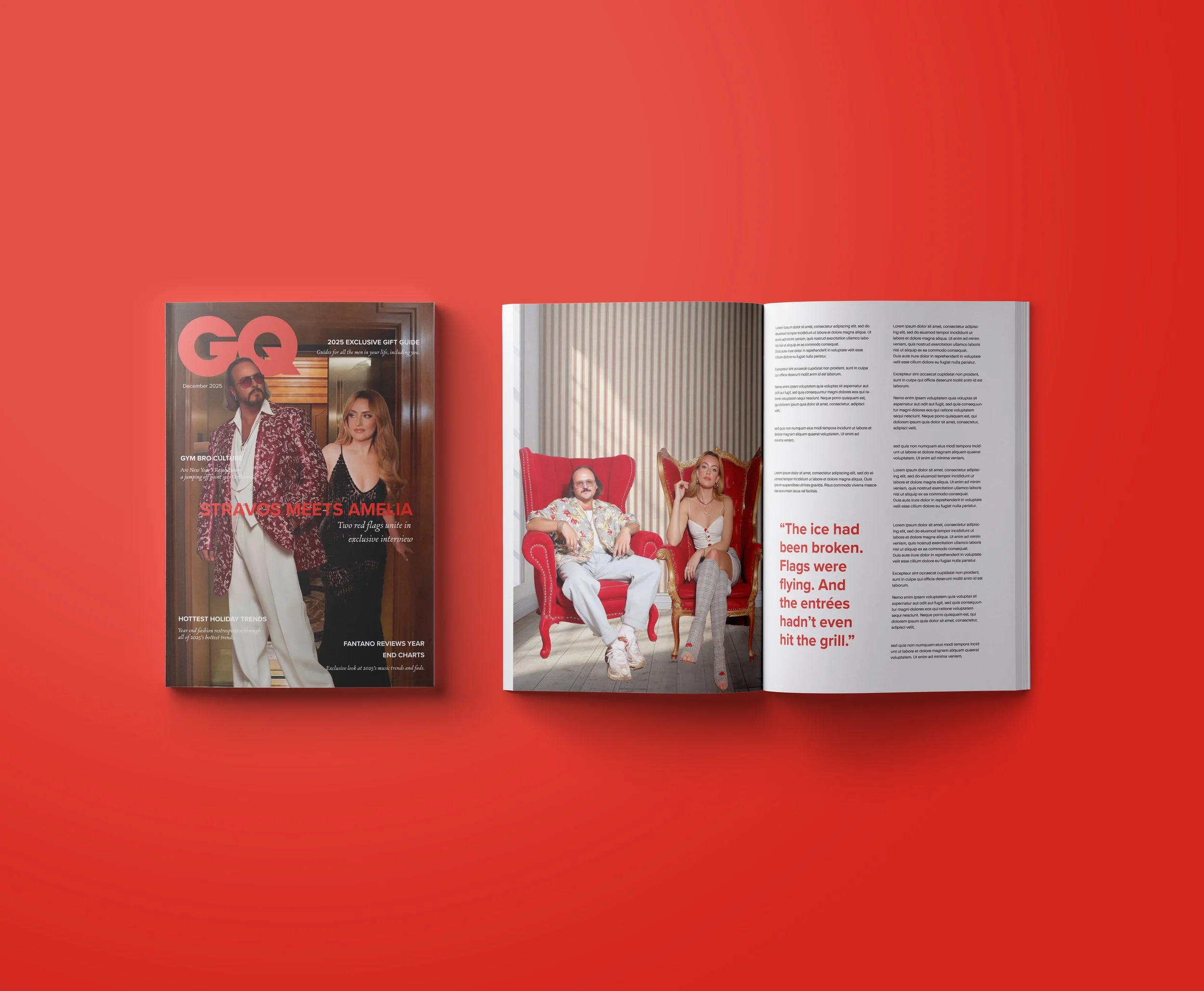 In collaboration with GQ Magazine, we’ll be organizing a Red Flag blind date between American comedian Stavros Halkias and British presenter Amelia Dimoldenberg. The duo will head to a restaurant picked by Mr. Halkias’. Everything they order will be picked by Ms. Dimoldenberg. GQ will publish a video Q&A with the pair that will run soon after the date.